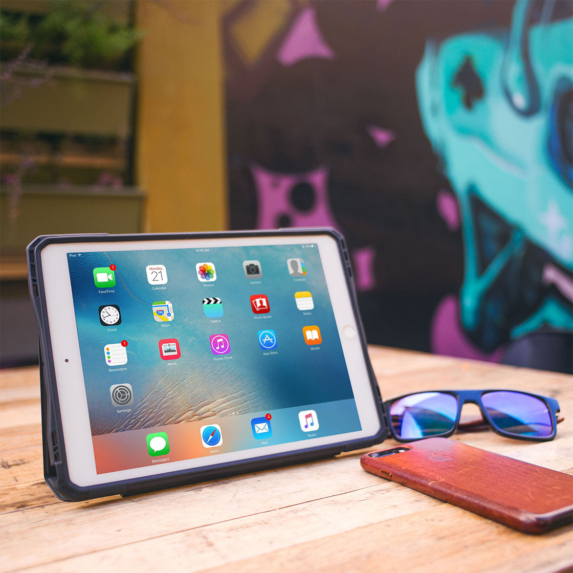 Today, UZBL offers an iPad case for every need. Our Shockwave case is the most durable and versatile UZBL case, and we offer a Shockwave for the iPad 9.7”, the iPad 10.2”, and the iPad Mini. The Shockwave case has a rugged design that doesn’t skimp on style. It includes a built-in screen protector, has UZBL’s signature cushioning ribs for shock absorption, immersive audio, covered buttons, and a slim design.