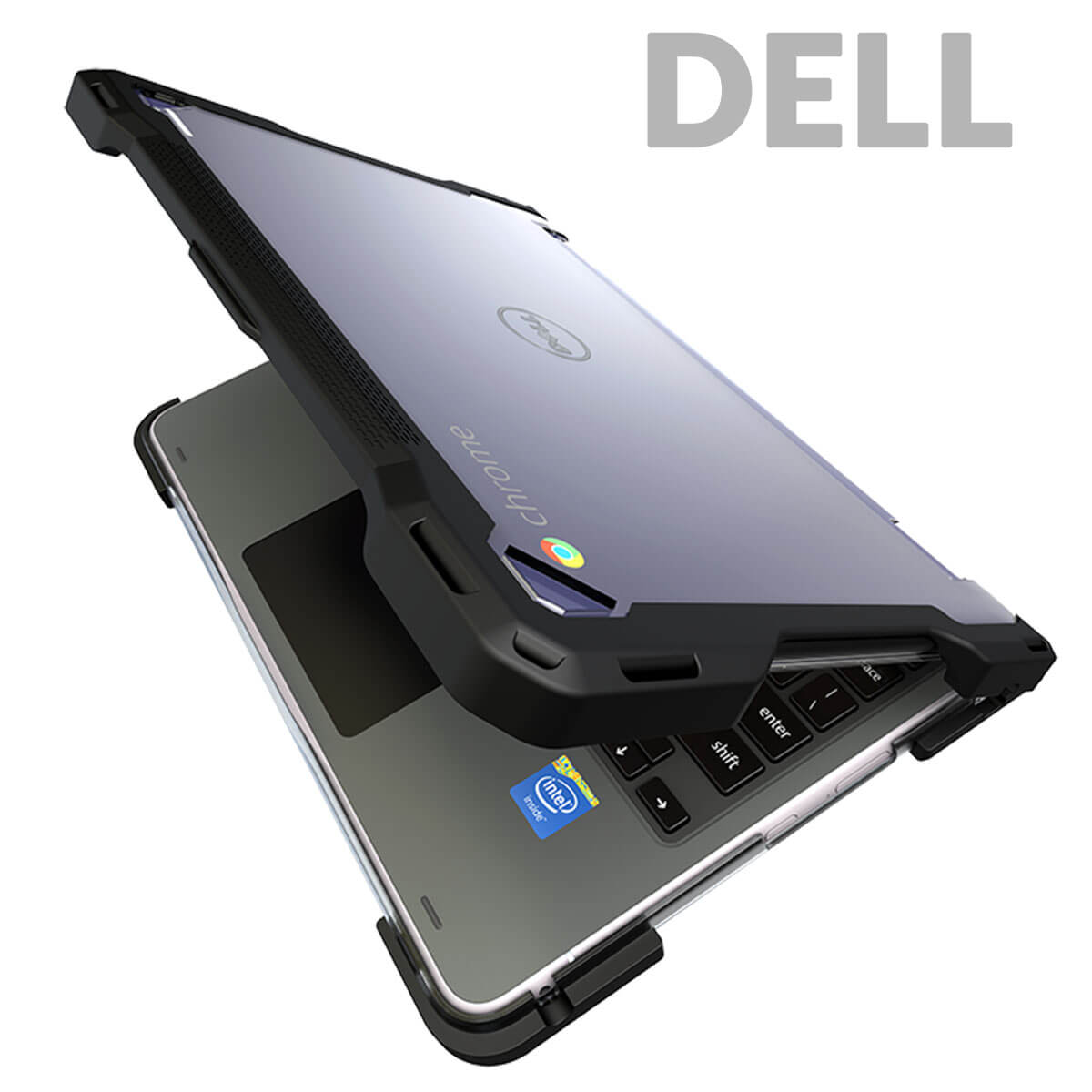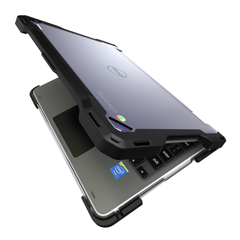 We kept our case simple to install and easy to use. The patented clasp system that retains the device makes installation quick and holds the chromebook firmly in place.