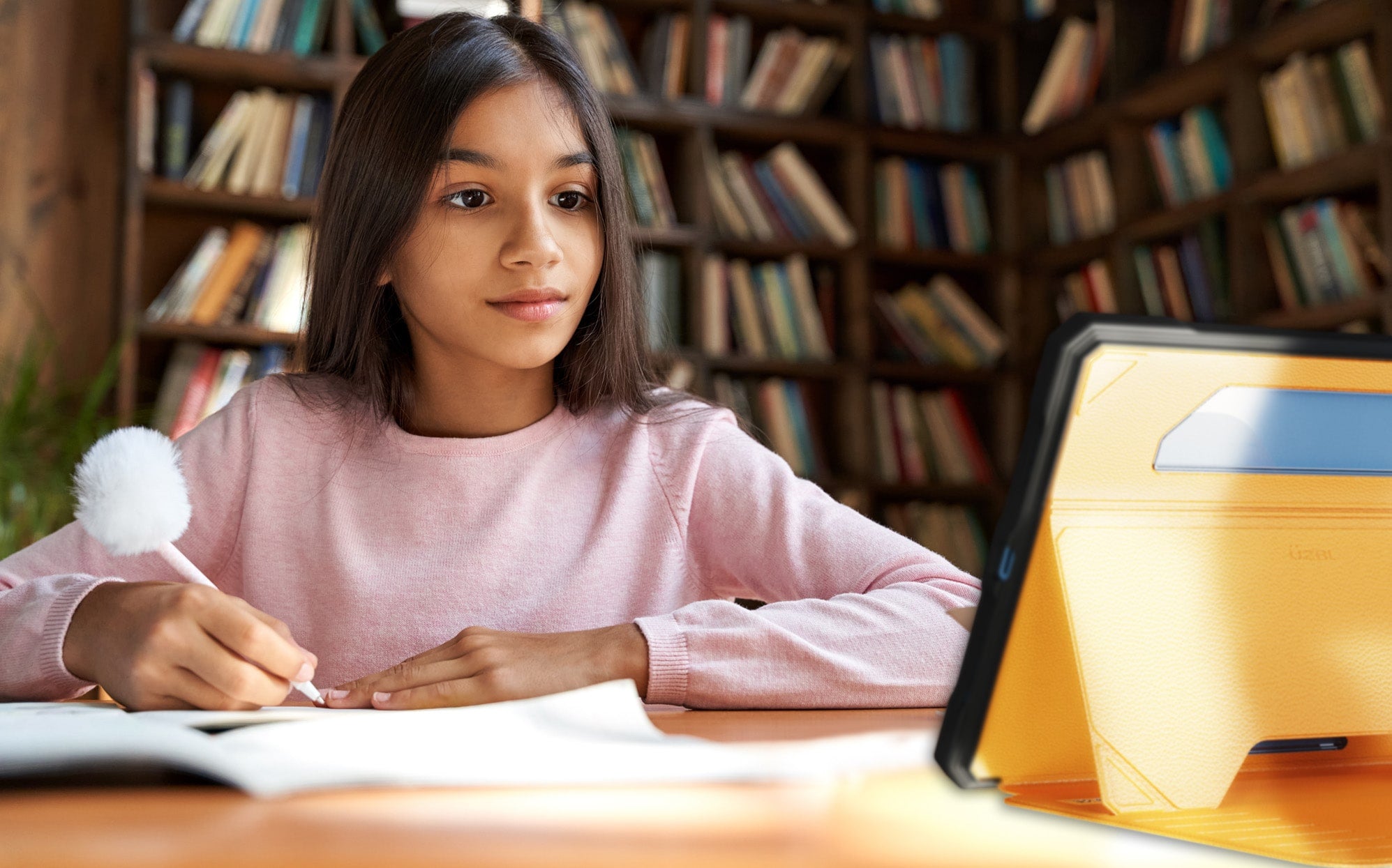 The Mag Folio Case offers a sleek portfolio design with reinforced air-cell cushioning for superior edge protection. Like all our cases, impact-prone corners and edges are reinforced with ribs and air cells, ensuring exceptional drop resistance. The scratch-resistant polyurethane front cover features a soft, silicone-like interior, providing both durability and a premium feel. A large clear back window allows easy visibility of custom stickers and school asset tags, combining protection with practicality.