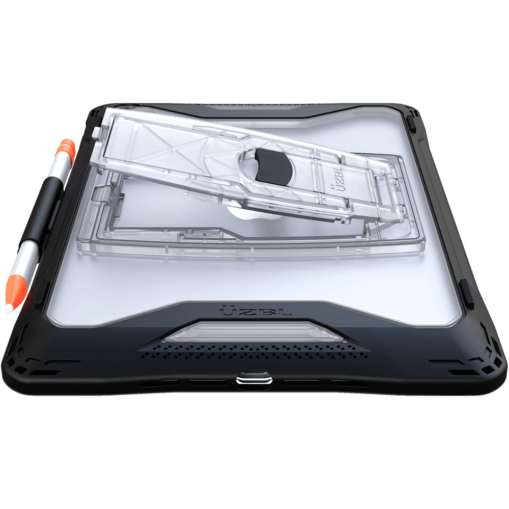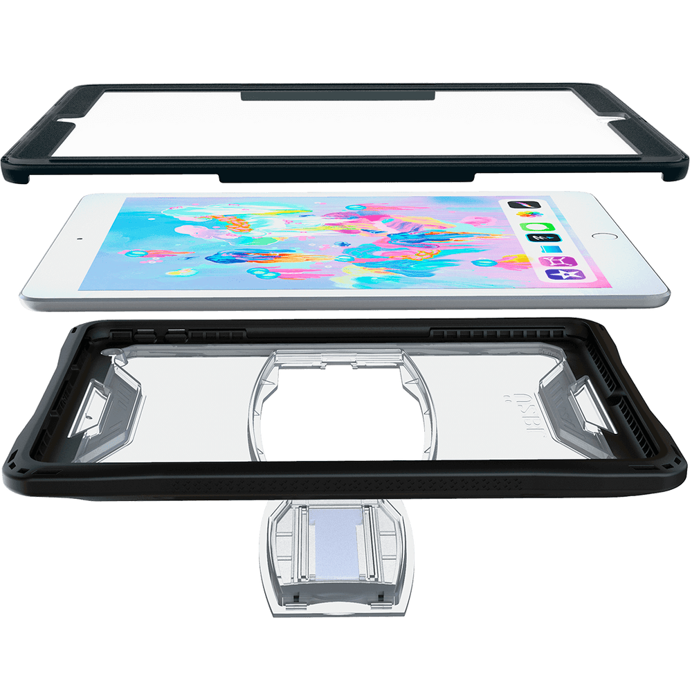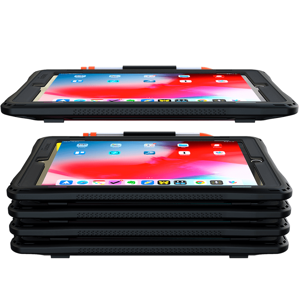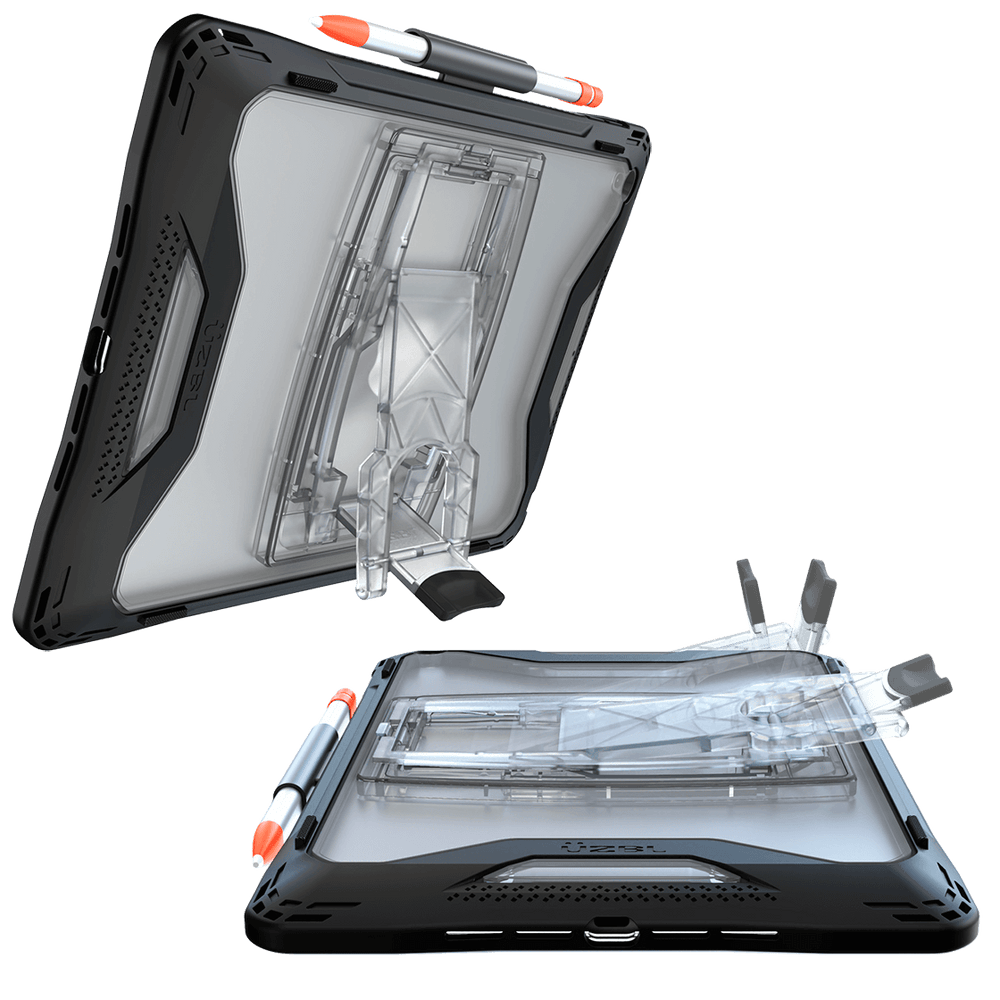 Features a quick-install 2-piece design, a glass screen protector for added durability, and shock-absorbing TPU construction. A collapsible stand reduces breakage, while stackable front grooves improve storage. It also includes an optional pencil holder for Apple Pencil and Logi Crayon. Built for schools, ready for any classroom.