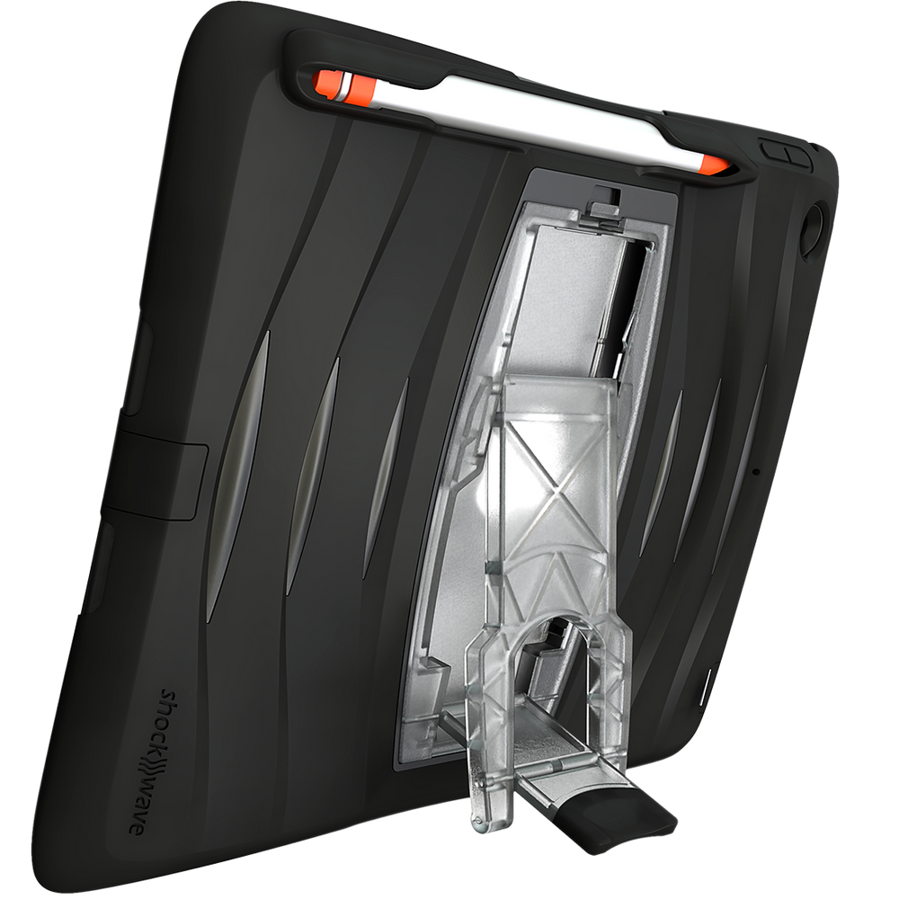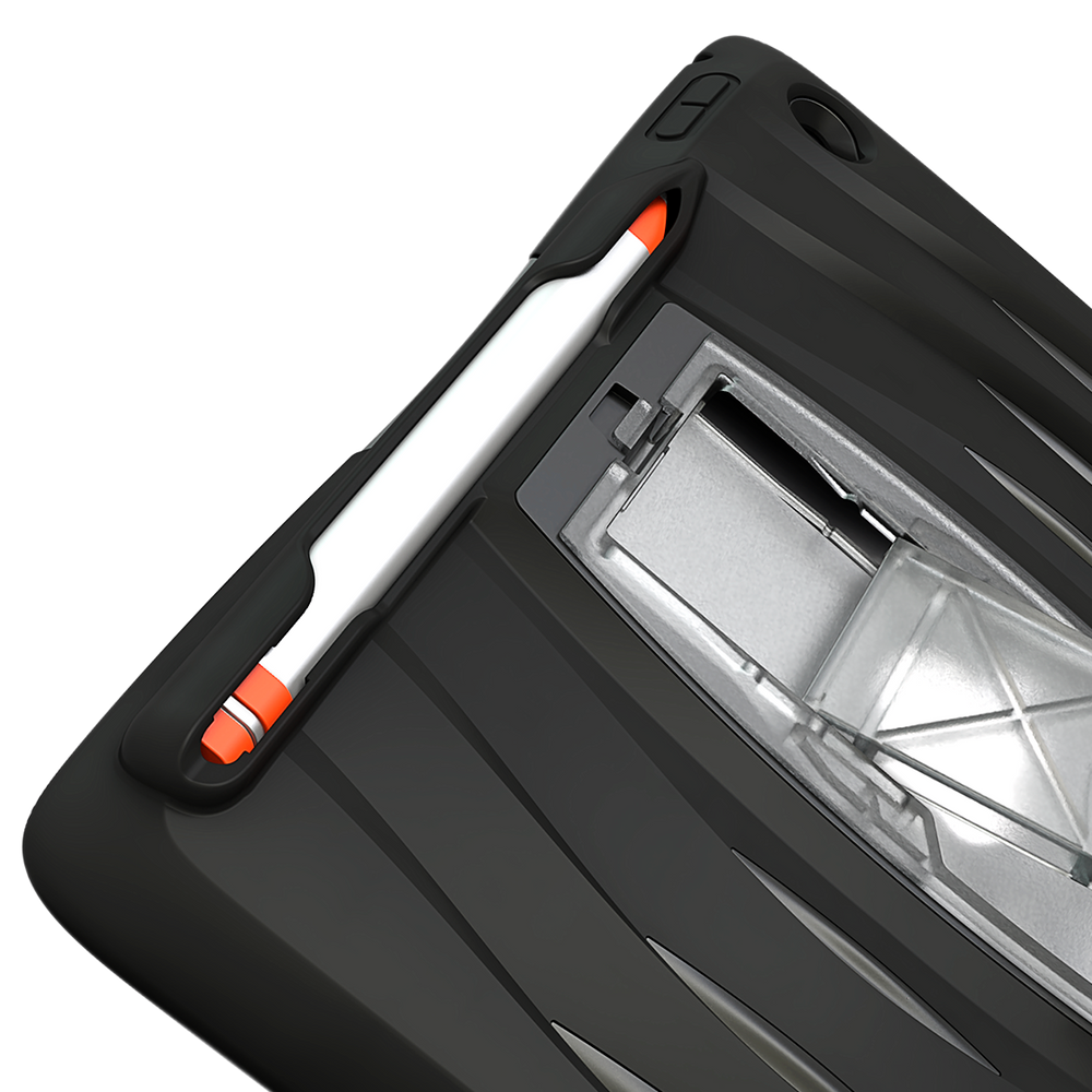 UZBL’s best-selling case for theiPad is built for ultimate rugged protection while maintaining the ease of a standard iPad case. Its three-layer design includes a built-in screen protector, a shock-absorbing silicone housing with deep grooves, and a secure backplate for durability. The case also features a built-in Apple & Logitech Crayon pencil holder and a replaceable kickstand. With a clip-in mechanism, users can easily swap the standard kickstand for a hand strap or other stand options, offering flexibility and convenience.